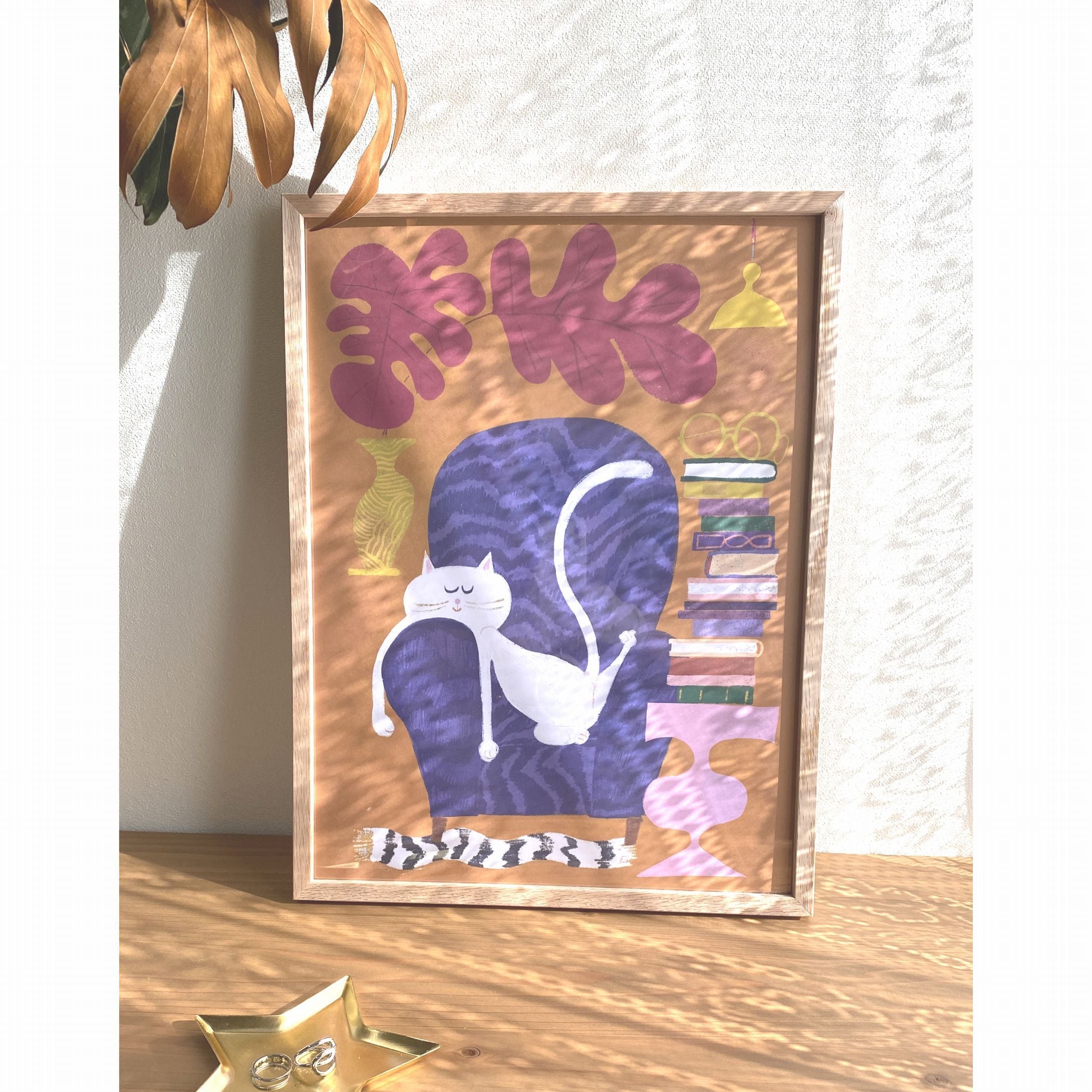 北欧ポスター【キャットナップ】30×40cm(フレーム付き)