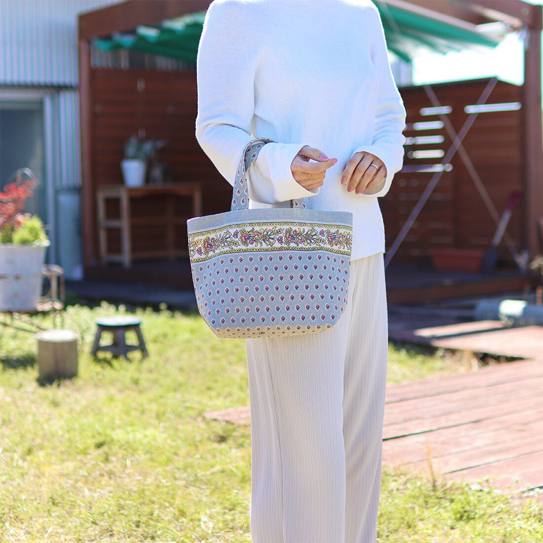 南仏の歴史あるテキスタイルをイメージしたトワルパント(木版プリント)風デザインのトートバッグ。