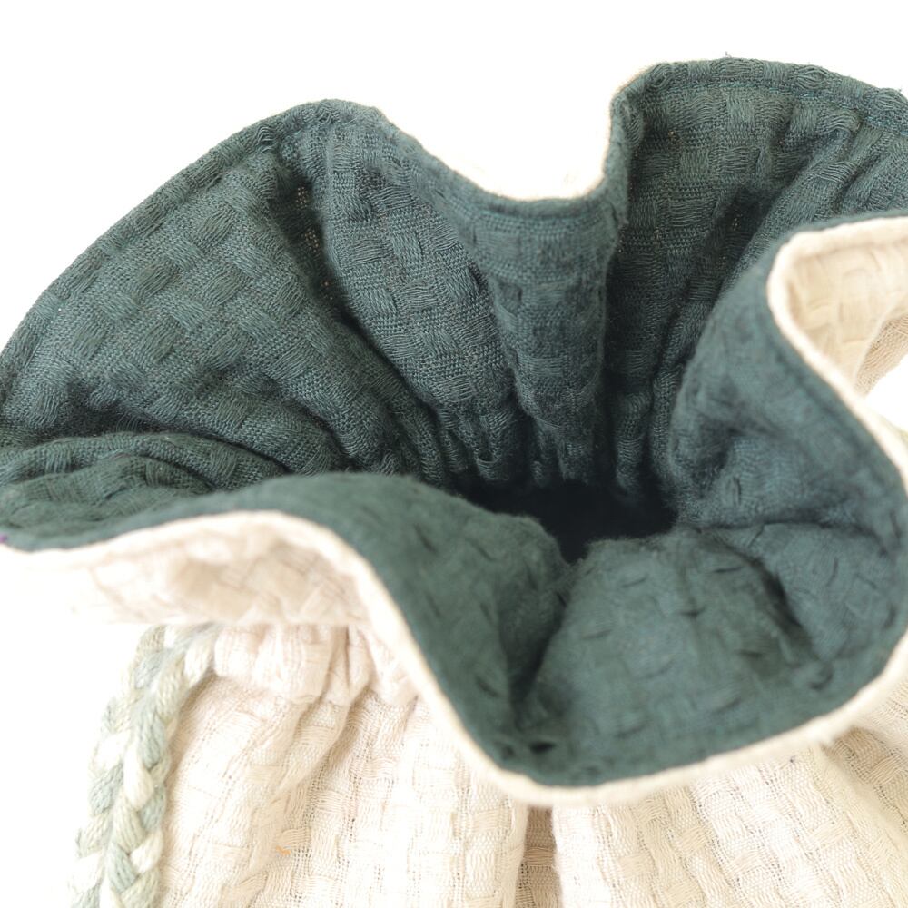 巾着ひもは、コーディネートのポイントになるミックスカラーです。