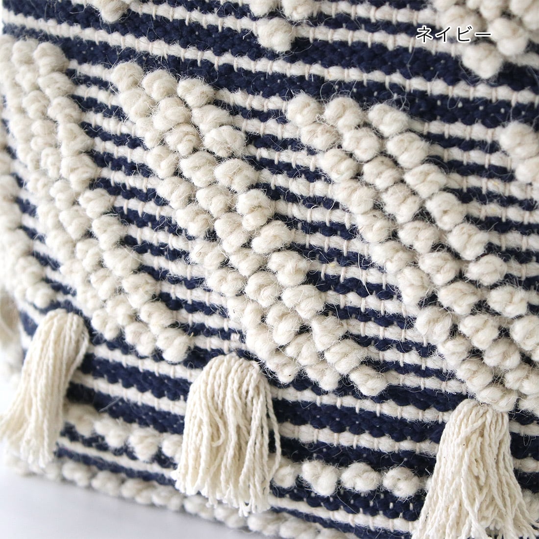 コットンの生地に羊毛(ウール)の玉を手作業で引き出して柄を表現したトートバッグ。